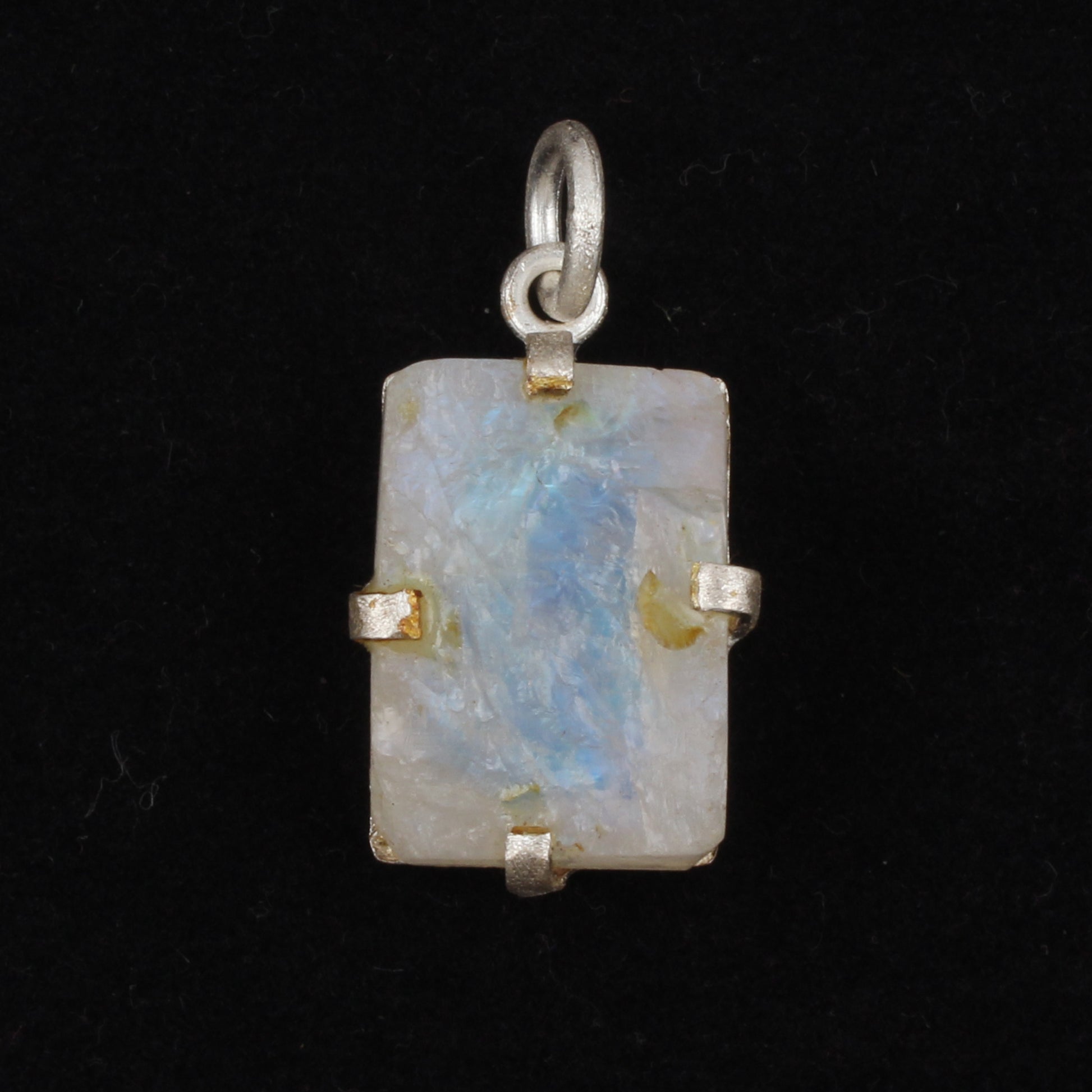 Rough Rainbow Moonstone Pendant Handmade 925 Sterling Silver Prong Setting Natural Gemstone Pendant