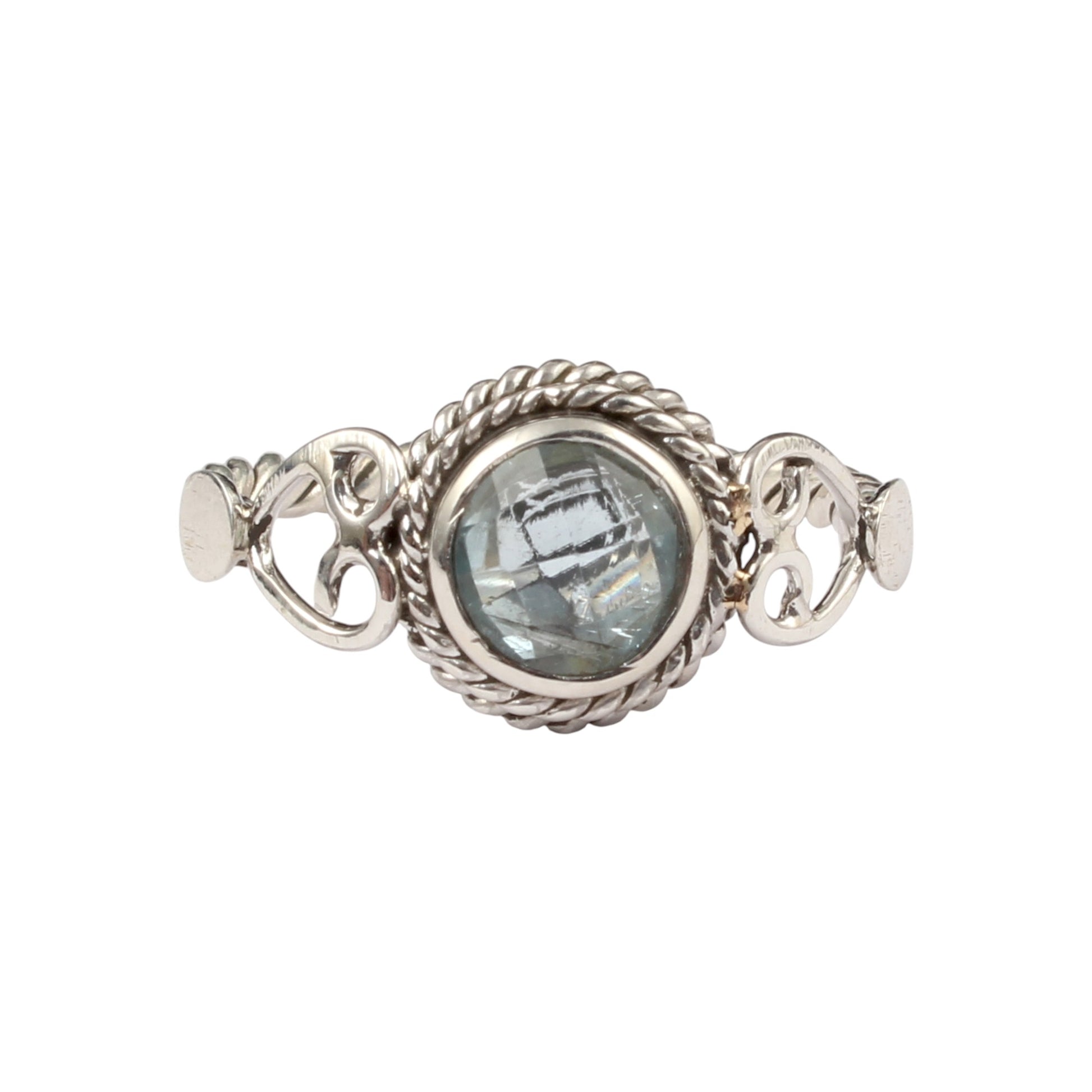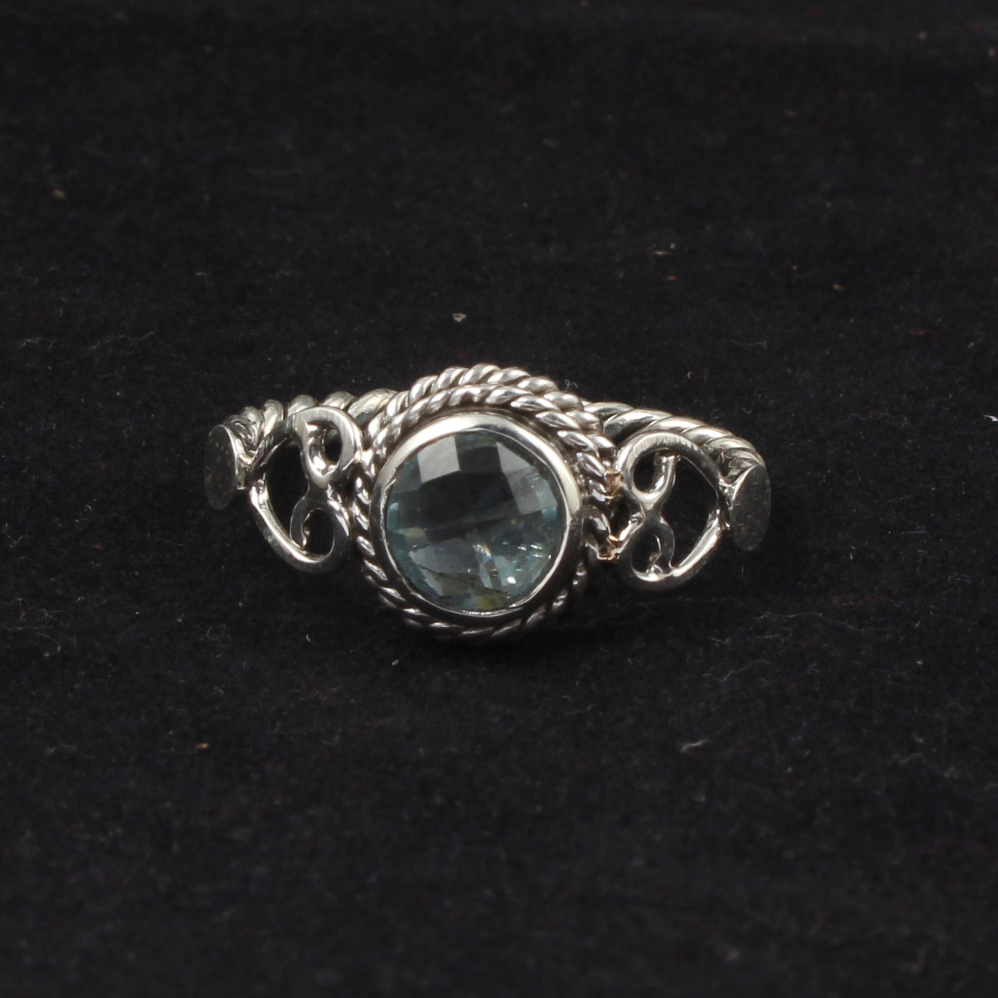 Round Checker Cut Blue Topaz Bohemian Ring Designer Twisted Rope Band 925 Sterling Silver Ring
