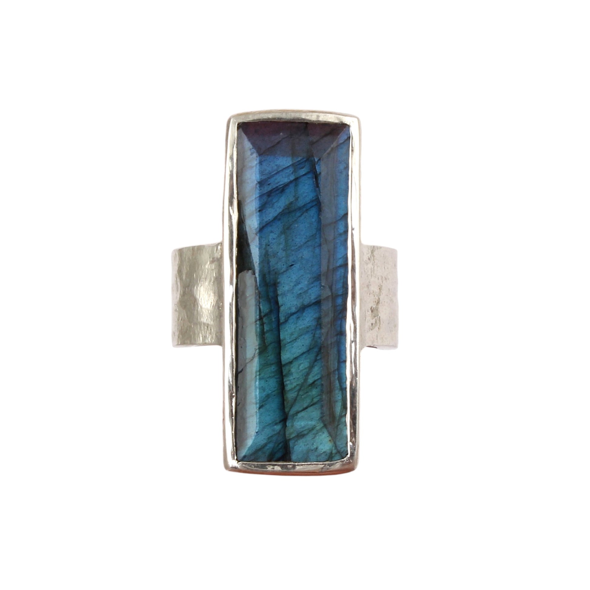 Textured Band Labradorite Ring Handmade 925 Sterling Silver Natural Gemstone Heavy Ring