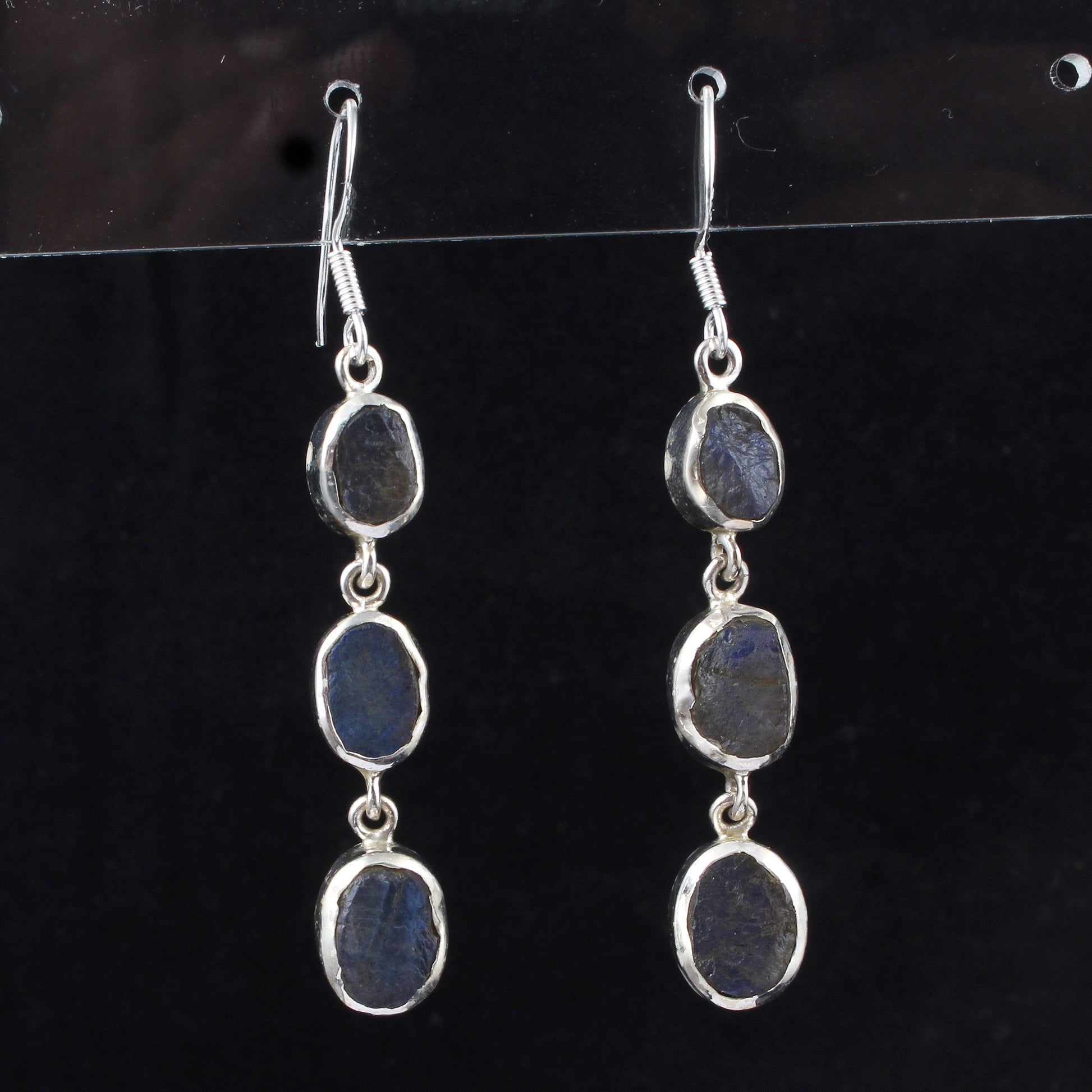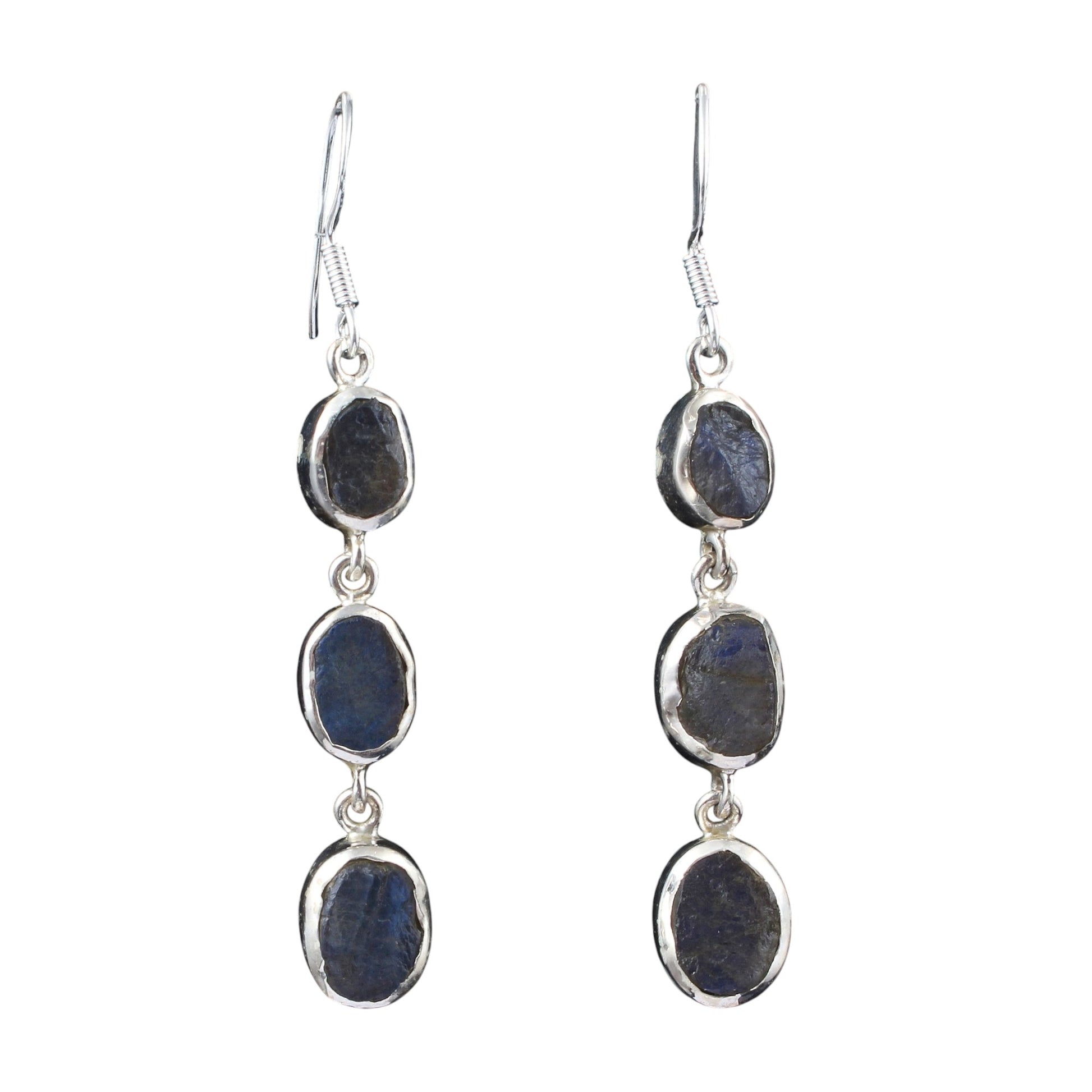 Crafted in 925 sterling silver, these handmade dangle earrings feature three natural labradorite stones measuring 10x8mm, 9x7mm, and 8x6mm. With a total weight of 10.3 grams and a size of 6.2 x 0.9 cm, they showcase labradorite’s signature iridescent flashes, adding an elegant and mystical touch to any ensemble. Perfect for those seeking expert craftsmanship combined with the unique beauty of natural gemstones.