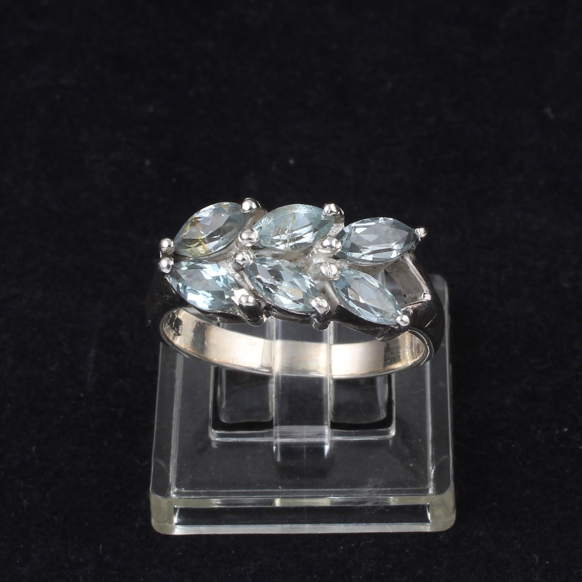 Vintage Marquise Cut Blue Topaz Cluster Ring in 925 Sterling Silver Handmade Designer Gemstone Ring